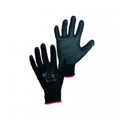 Rukavice s dlaňami a prstami máčané v polyuretanu. Použitie: pri montáži, kontrole a balení malých súčastiek v suchom alebo ľahko zaolejovanom prostredí, v automobilovom priemysle, elektronike, logistike a skladovaní.